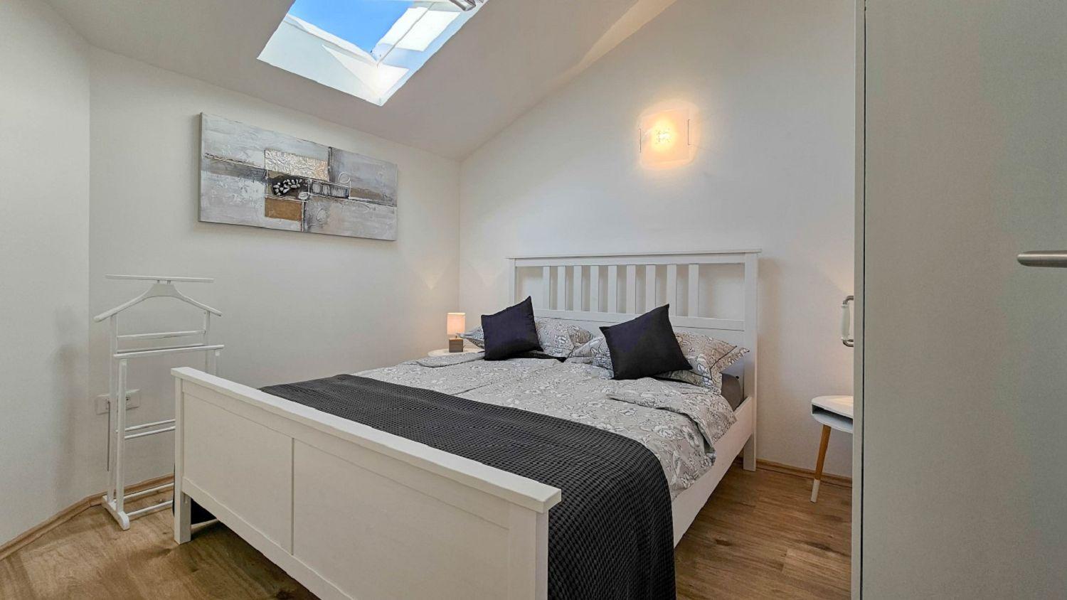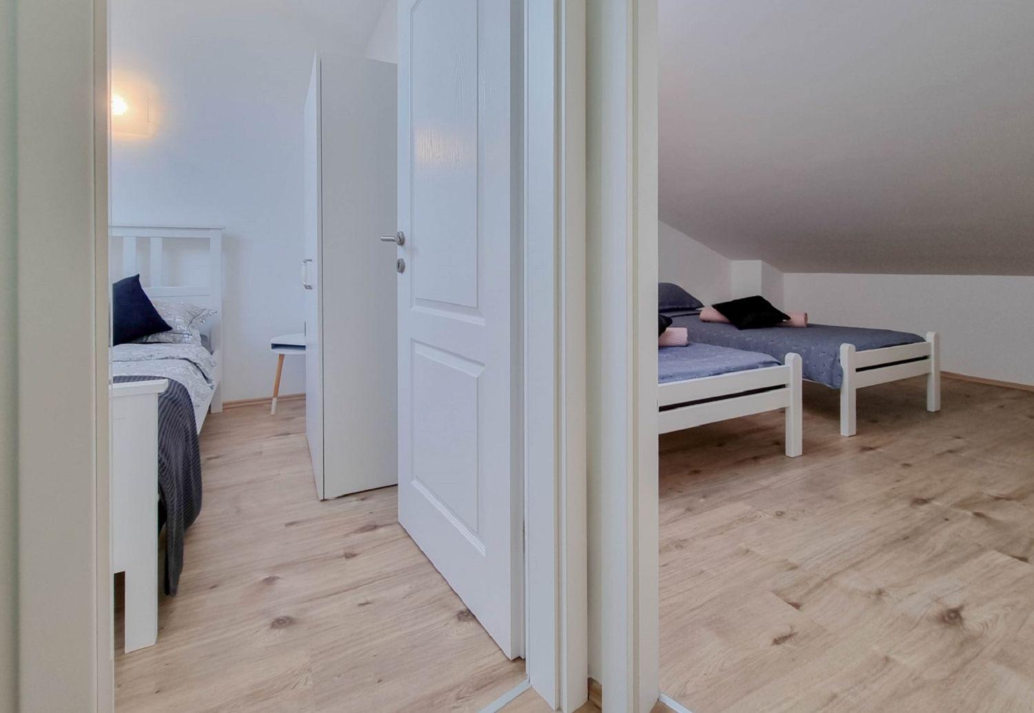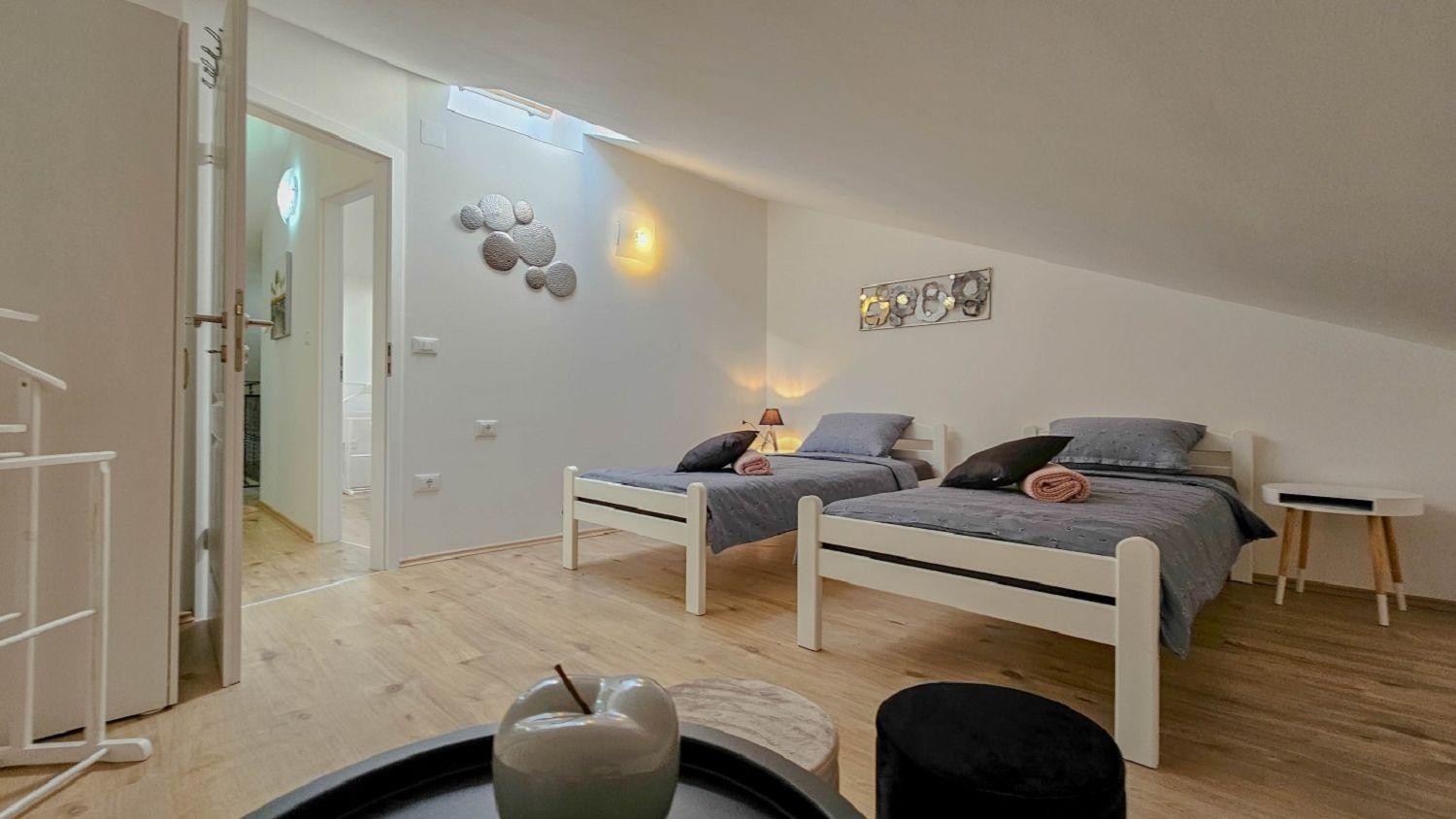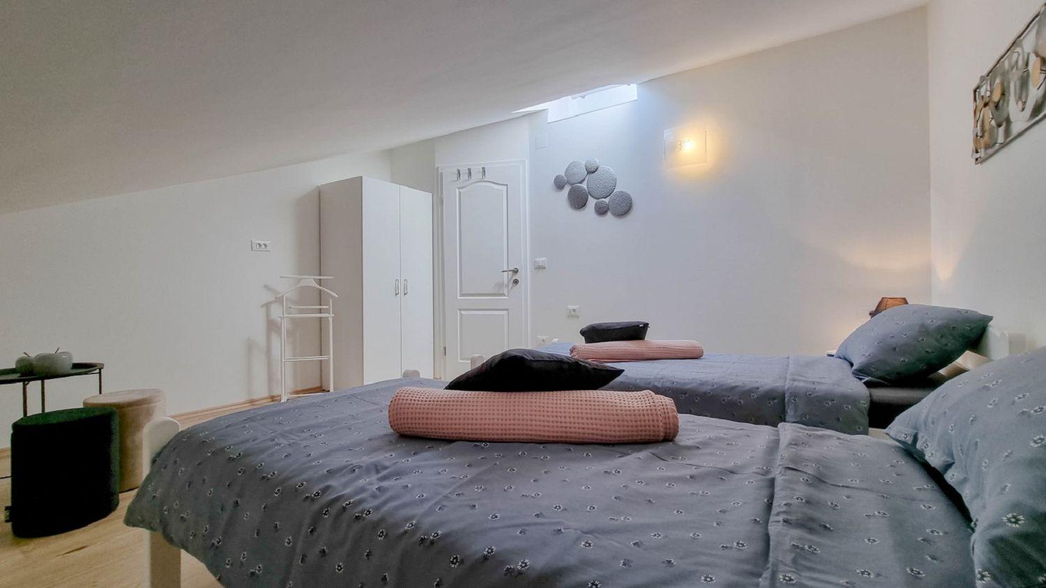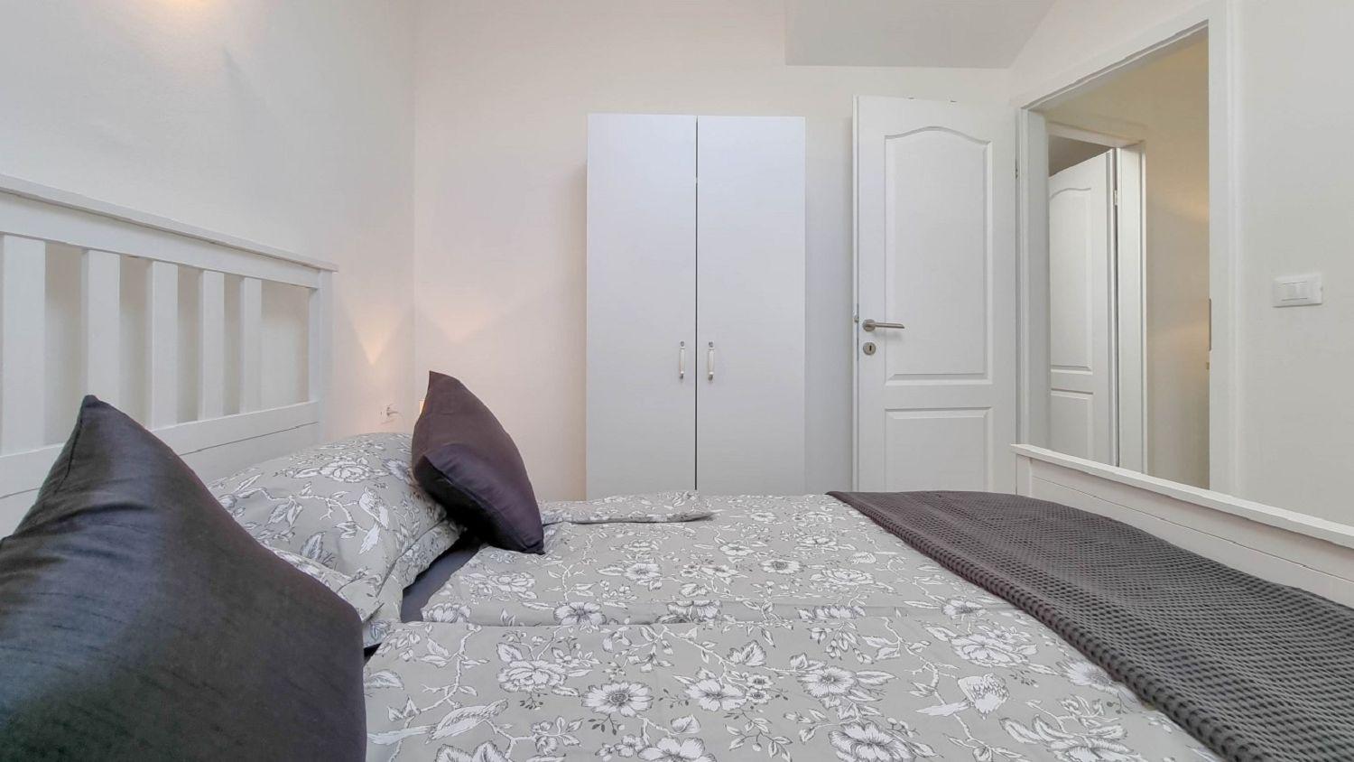Diese geräumige Ferienwohnung für 4 Personen in Novigrad, Istrien, erstreckt sich über zwei Etagen (1. und 2. Etage) und bietet eine komfortable Unterkunft für Ihren Aufenthalt. Es besteht aus zwei komfortablen Schlafzimmern, einem Wohnzimmer und einer gut ausgestatteten Küche mit Essbereich. Die Küche ist mit Elektroherd, Backofen, Kühlschrank, Spülmaschine, Mikrowelle und Kaffeemaschine ausgestattet, so dass Sie Ihre Mahlzeiten selbst zubereiten können. Außerdem gibt es ein Badezimmer mit Dusche und WC sowie einen Balkon mit Tisch und Stühlen, ideal zum Entspannen und Genießen der Aussicht. Weitere Annehmlichkeiten wie SAT-TV, Klimaanlage, Internet, Bettwäsche und Handtücher sind im Preis inbegriffen und sorgen für einen angenehmen Aufenthalt für alle Gäste.