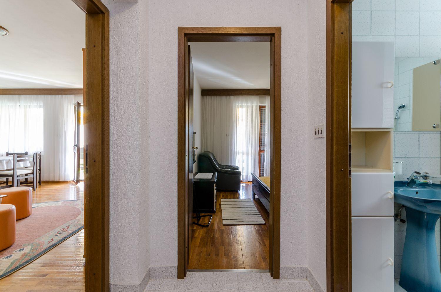 Dieses gepflegte Haus mit drei Ferienwohnungen befindet sich in einer ruhigen Umgebung des beliebten Urlaubsortes Crikvenica. Im ersten Stock des Hauses befindet sich eine 78 m² große Wohnung für sechs Personen.