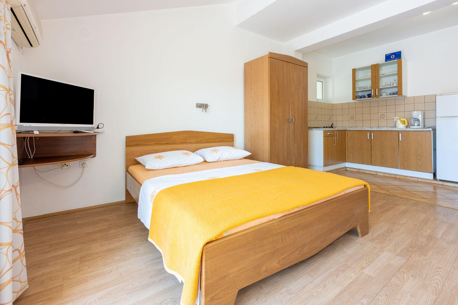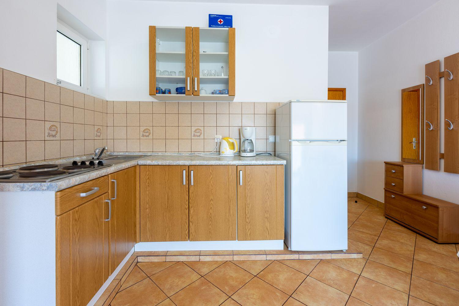 Diese gemütliche Ferienwohnung liegt in einer ruhigen Wohnsiedlung in Crikvenica. Es handelt sich um ein 30 m² großes Studioapartment im 3. Obergeschoss. Es besteht aus einem Wohn-/Schlaf-/Esszimmer mit Küche, einem Badezimmer und einem Balkon mit Meerblick. Im Wohnbereich befindet sich ein Doppelbett und eine Schlafcouch für eine Person. Im Garten steht ein Grill zur Verfügung, den alle Gäste dieses Hauses nutzen können.