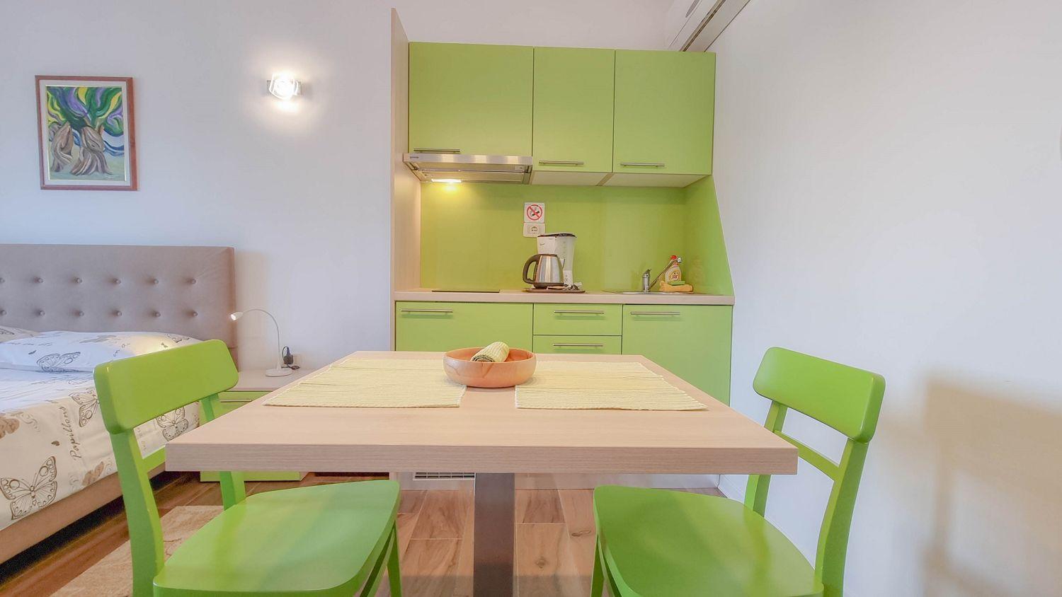 Willkommen in unserem kleinen Paradies im Herzen von Novigrad, ideal für einen romantischen Urlaub zu zweit! Unser Studio befindet sich im ersten Stock eines Einfamilienhauses und bietet eine komfortable und intime Unterkunft für Paare, die dem Alltag entfliehen möchten. Mit einem bequemen Doppelbett und einer gut ausgestatteten Küche werden Sie sich wie zu Hause fühlen und Ihre gemeinsamen Momente genießen. Die Küche ist mit allem ausgestattet, was Sie brauchen, um leichte Mahlzeiten oder eine Tasse Kaffee für zwei zuzubereiten. Durch die Fenster können Sie den Blick auf die friedliche Landschaft von Novigrad genießen, während das komfortable Badezimmer mit Dusche für Erfrischung nach einem erlebnisreichen Tag in Istrien sorgt.