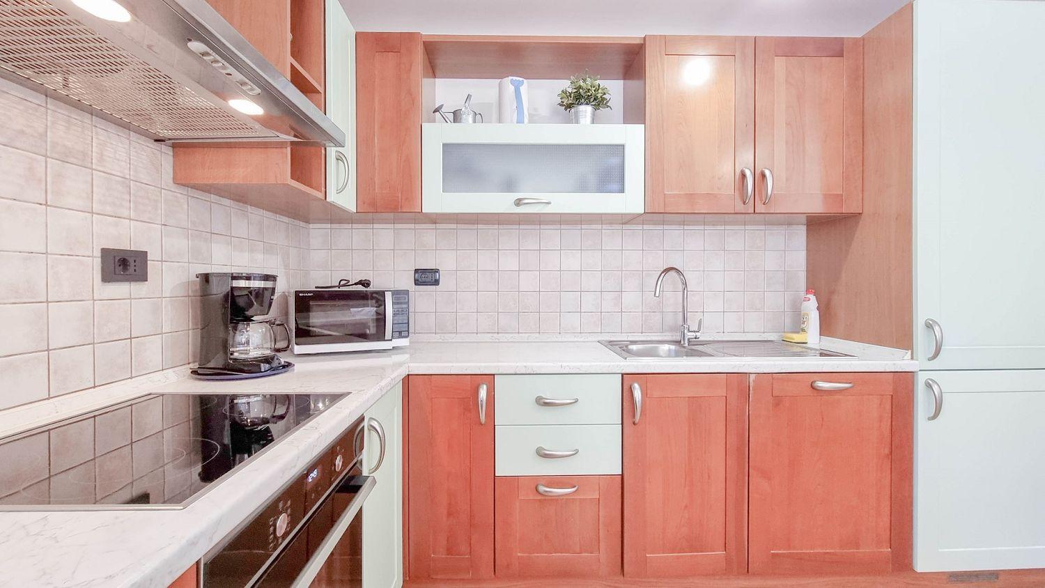 Das Apartment bietet Platz für bis zu 4 Personen und verfügt über zwei komfortable Schlafzimmer, ideal für einen erholsamen Schlaf nach einem erlebnisreichen Tag in der Umgebung. Das geräumige Wohnzimmer bietet einen angenehmen Raum für geselliges Beisammensein und Entspannung, während die voll ausgestattete Küche mit Esszimmer alle notwendigen Einrichtungen für die Zubereitung von Mahlzeiten bietet.