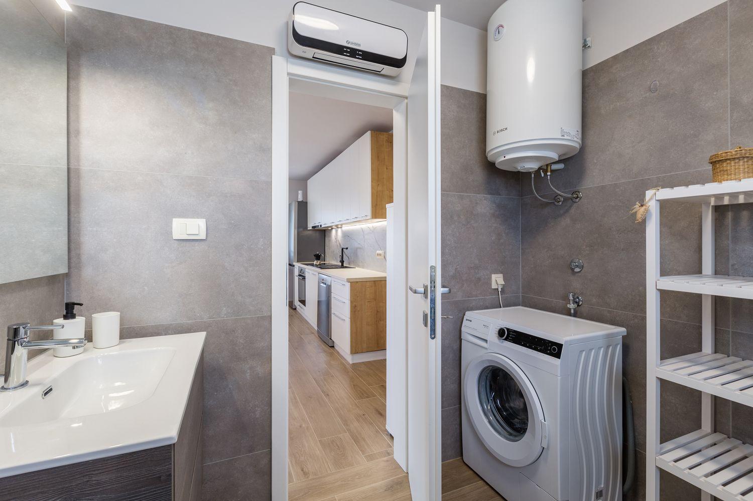 Das Appartement ist ein neu renoviertes Appartement im Stadtteil Novo Naselje von Porec, nur 700 m vom Strand Brulo, Sportanlagen und Restaurants entfernt. Das Stadtzentrum ist zu Fuß in 15 Minuten zu erreichen, das nächste Geschäft ist 600 m entfernt. Parkplatz für 3 Autos direkt vor dem Haus.