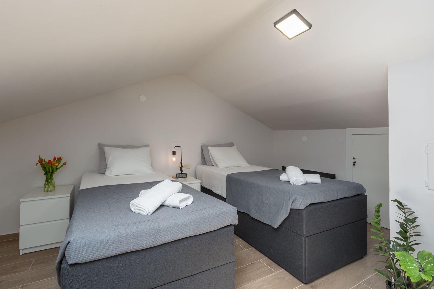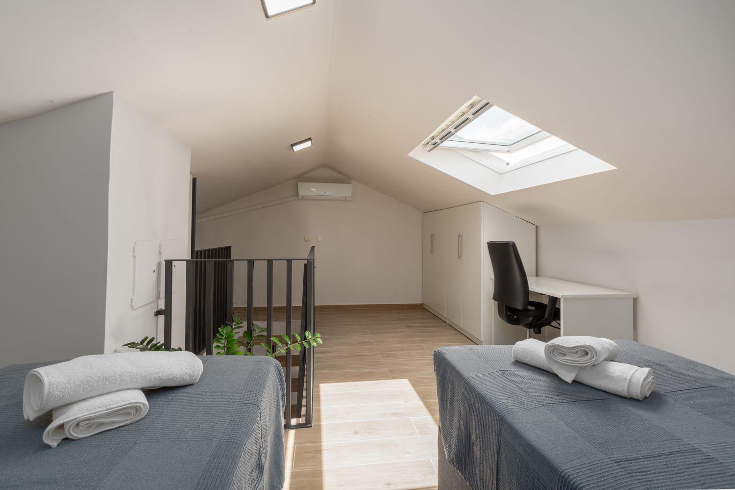 Die Wohnung ist für 4 Personen geeignet, befindet sich im 1. Stock und hat eine Wohnfläche von 75 m2. Im Erdgeschoss befinden sich ein geräumiges Wohnzimmer mit Zugang zum überdachten Balkon mit Sitzgarnitur, eine voll ausgestattete Küche mit Esstisch, ein Schlafzimmer mit Doppelbett und ein Badezimmer mit Dusche/WC. Im Obergeschoss befindet sich das Schlafzimmer (Galleria) mit zwei Betten, die bei Bedarf zusammengestellt werden können. Die Wohnung ist auf beiden Etagen klimatisiert und verfügt über WLAN. Jugendgruppen sind nicht zugelassen.