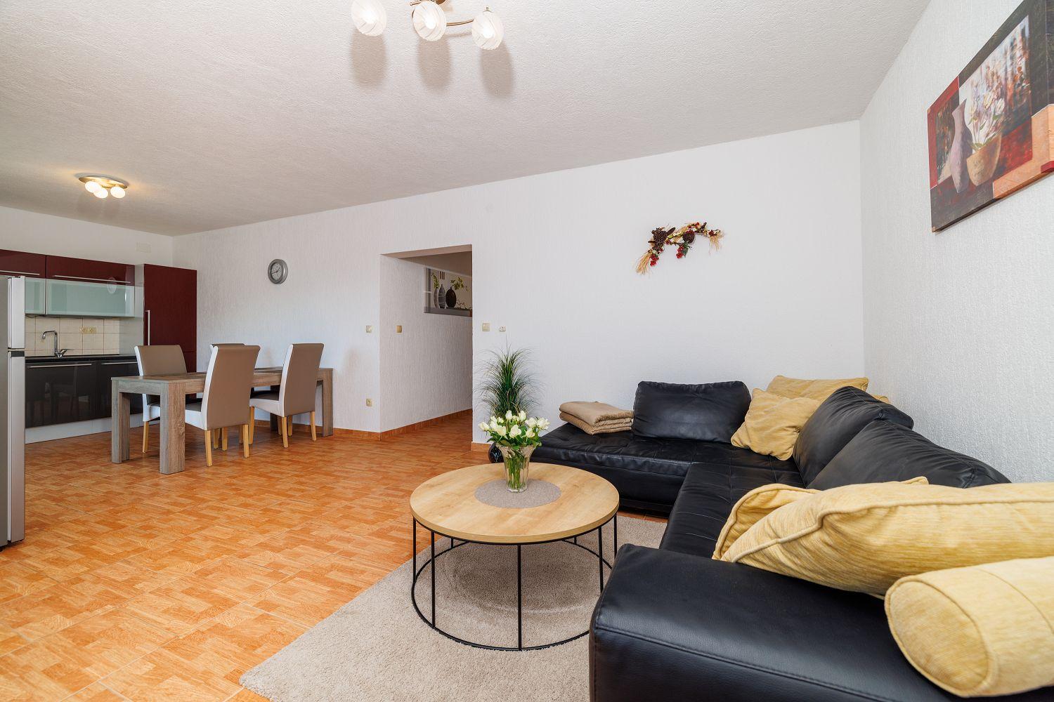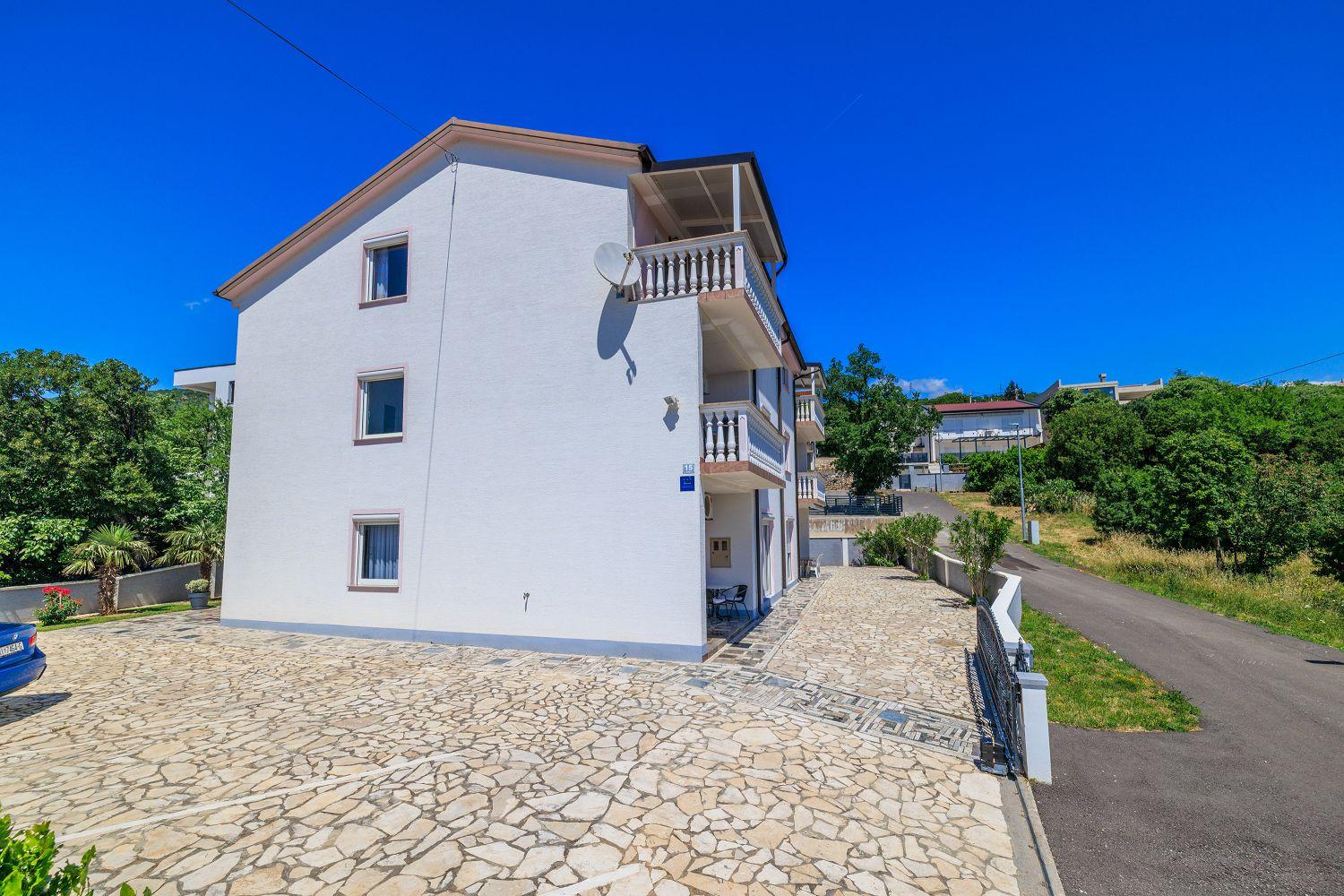 Diese moderne Ferienwohnung liegt im ruhigen Fischerort Povile, der ca. 15 km von Crikvenica entfernt ist. Das Apartment besteht aus einem gemütlichen Wohn-/Esszimmer mit Küche, drei Schlafzimmern und einem Badezimmer. Von der Küche aus hat man Zugang zu einem teilweise überdachten Balkon, der einen fantastischen Ausblick auf das Meer und die Insel Krk bietet. Die Ferienunterkunft ist mit einer Klimaanlage ausgestattet, die gegen Gebühr genutzt werden kann. Außerdem gibt es Satellitenfernsehen und Internet. Auf Anfrage sind ein Kinderbett und ein Kinderhochstuhl kostenfrei erhältlich. Ein Parkplatz auf dem Grundstück ist im Preis inbegriffen.