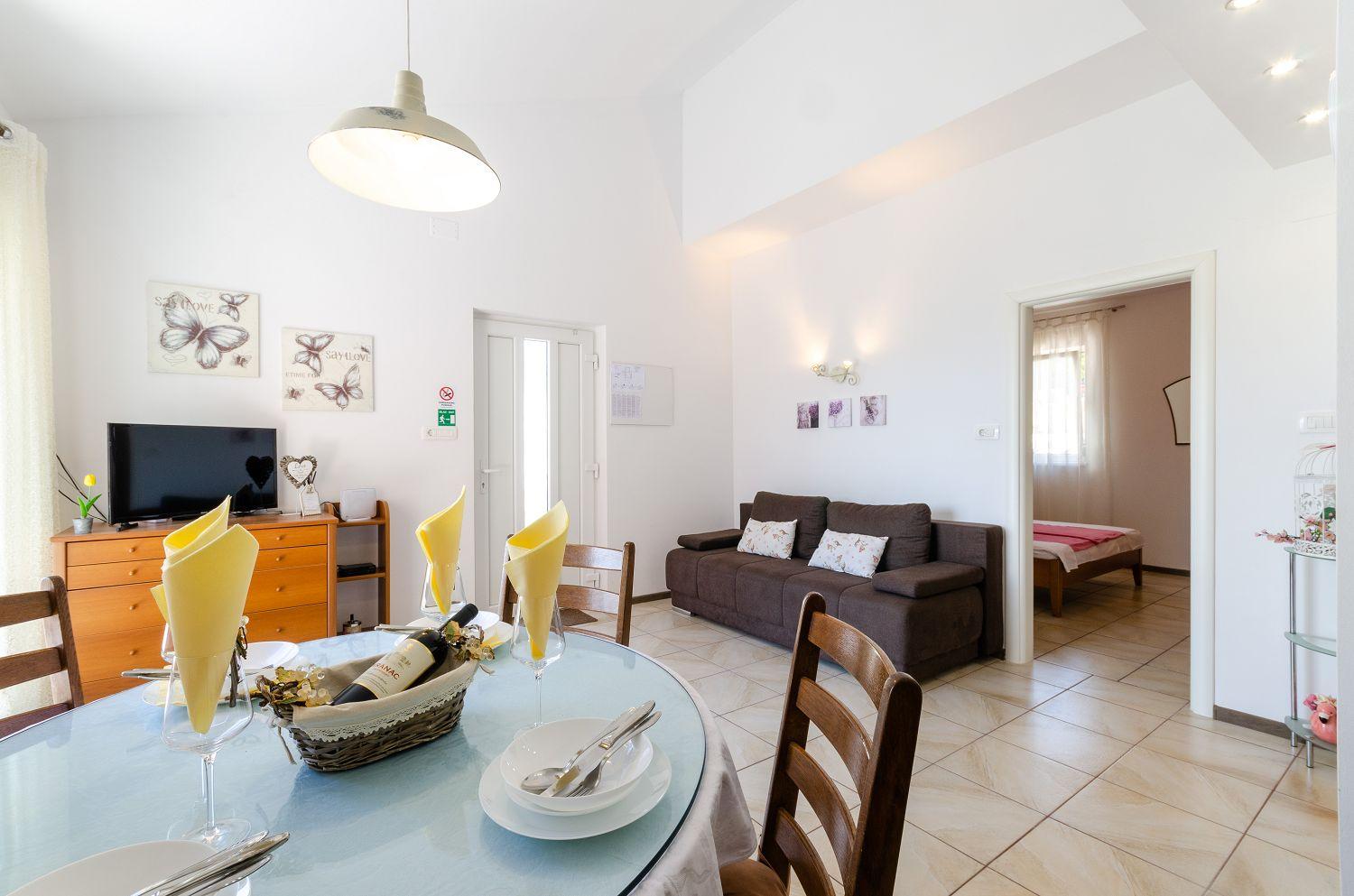 Diese stilvoll eingerichtete Ferienwohnung liegt am Rande des Stadtzentrums von Crikvenica, nur 300 Meter vom Strand entfernt. Die Unterkunft ist für zwei bis vier Personen geeignet und verfügt über ein Wohn-/Esszimmer mit einer Schlafcouch für zwei Personen, eine Küche, ein Schlafzimmer und ein Badezimmer. Vom Wohnzimmer aus gelangt man auf den möblierten Balkon. Eine Klimaanlage, Internet, ein Grill und ein privater Parkplatz stehen den Gästen dieser Ferienwohnung frei zur Verfügung.