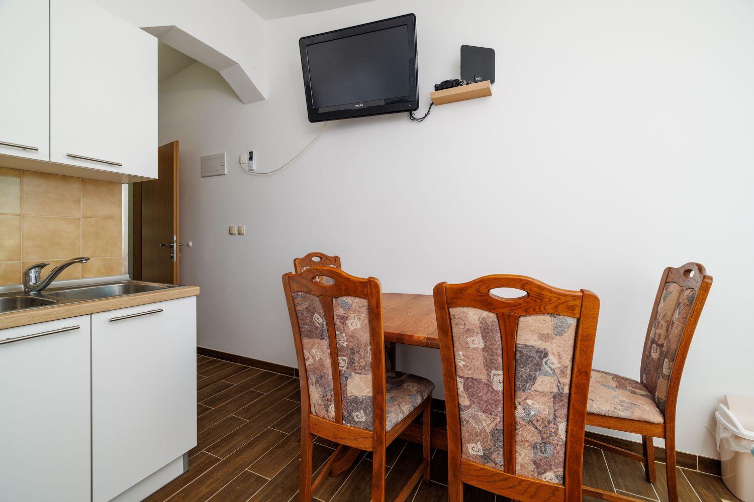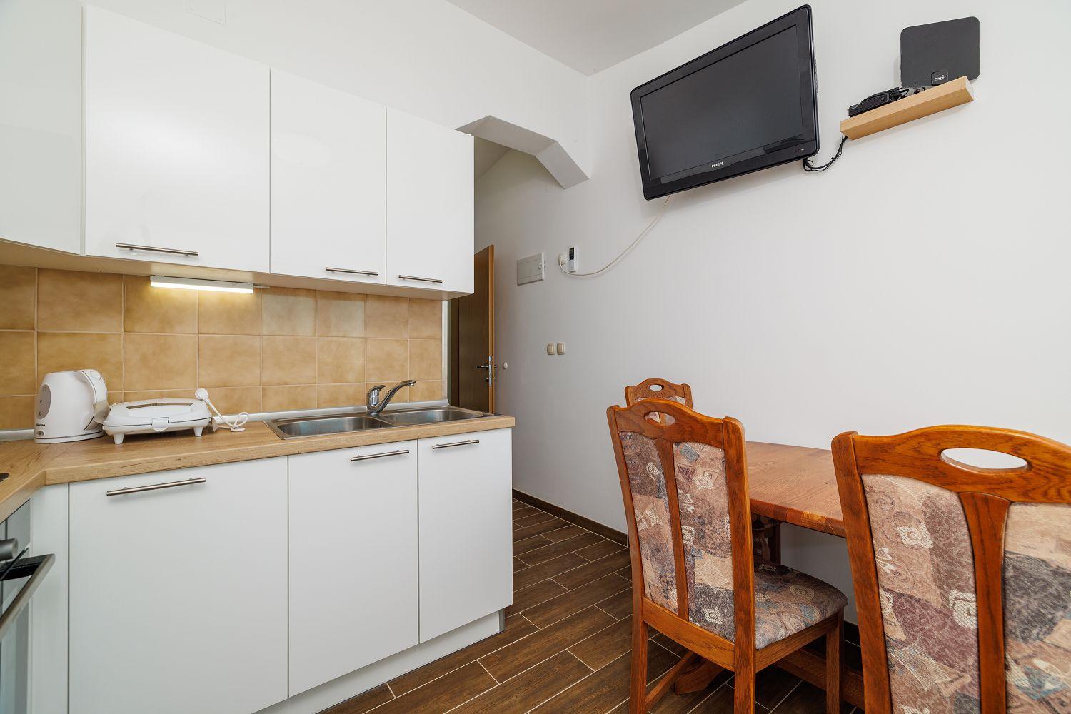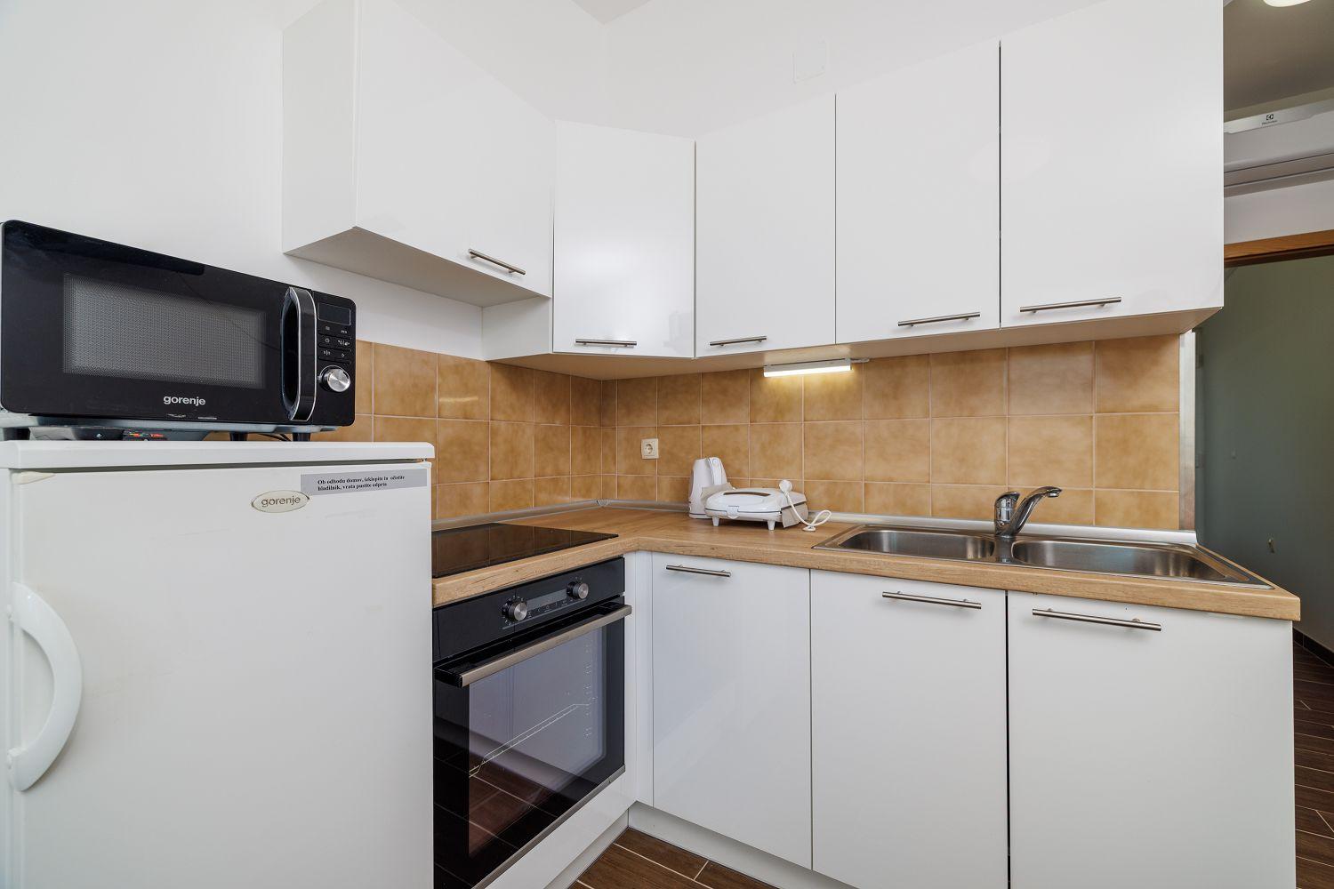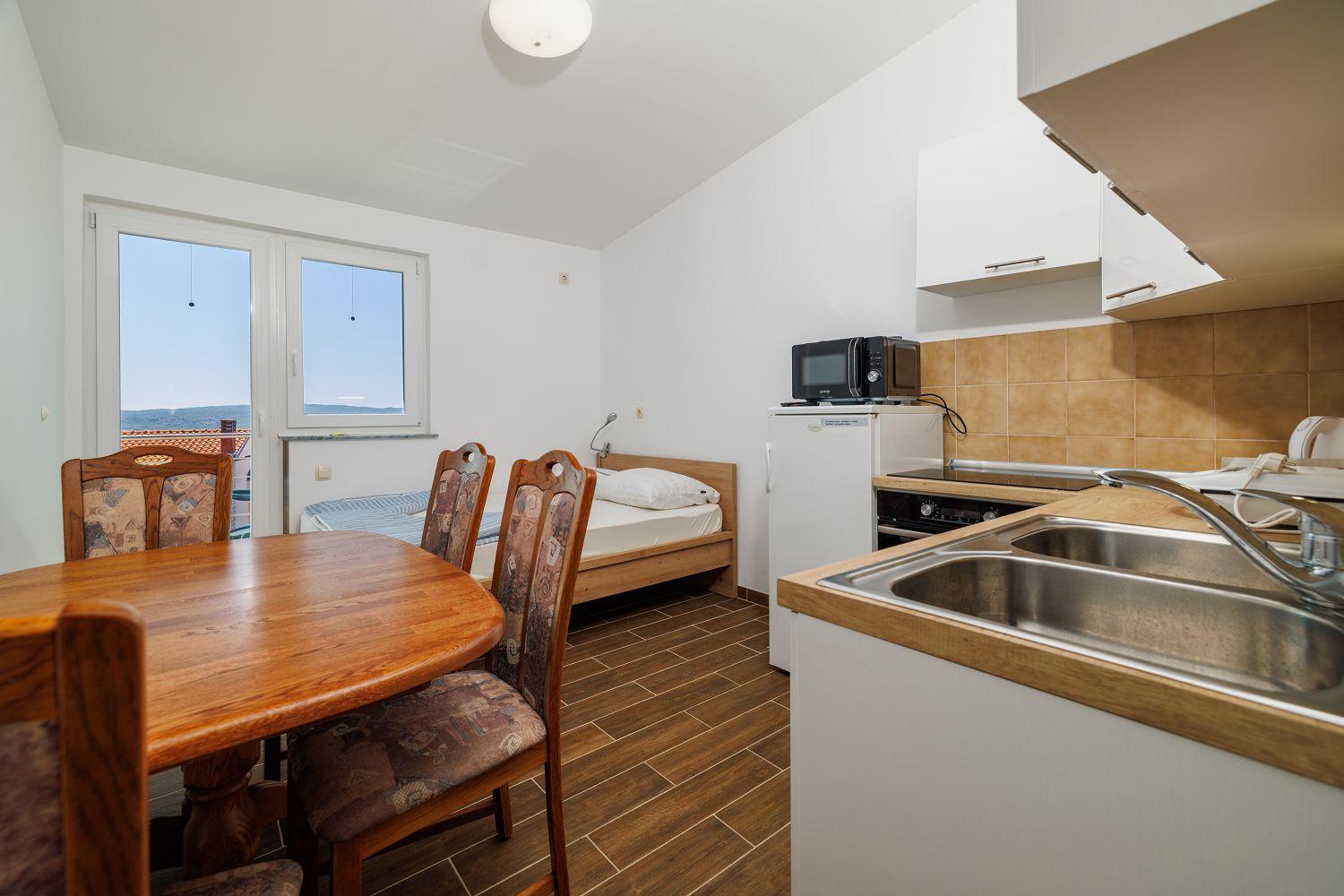 Diese gemütliche Ferienwohnung in Crikvenica bietet Platz für zwei bis drei Personen und ist der ideale Ort, um einen erholsamen Aufenthalt an der kroatischen Adriaküste zu verbringen. Die klimatisierte Unterkunft verfügt über einen Wohn- und Essbereich mit einer gut ausgestatteten Küche. Dort befindet sich auch eine zusätzliche Schlafgelegenheit für eine Person. Ein separates Schlafzimmer sorgt für erholsame Nächte, während das moderne Badezimmer Komfort und Funktionalität vereint. Der gemeinsame Balkon lädt zum Verweilen ein und bietet einen angenehmen Platz, um die warmen Sommerabende zu genießen. WLAN ist in der gesamten Wohnung verfügbar und den Gästen steht ebenfalls ein privater Parkplatz zur Verfügung.