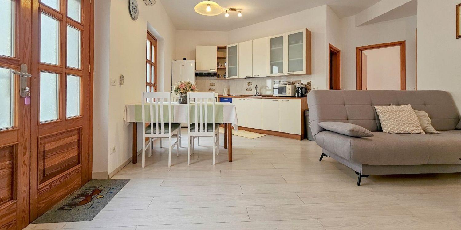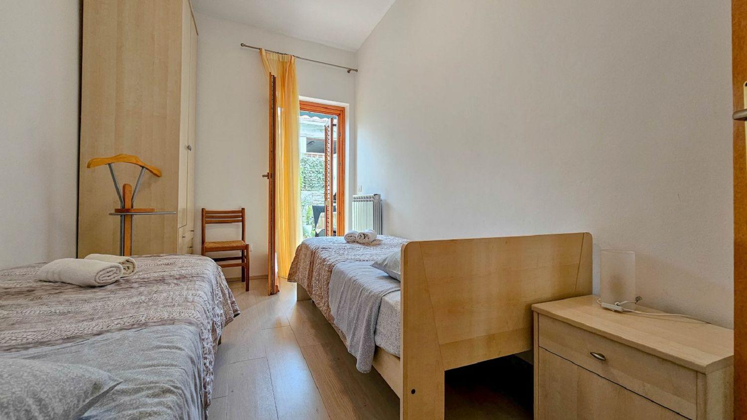 Diese schöne Ferienwohnung für bis zu 4 bis 5 Personen, im Erdgeschoss gelegen, besteht aus zwei Schlafzimmer (eine mit Doppelbett und zweite mit zwei Einzelbetten), ein Wohnzimmer mit einem Schlafsofa für 1 Person und eine Küche. Die Küche ist mit Gasherd, Kühlschrank und Kaffeemaschine ausgestattet. Desweiteren gibt es ein Badezimmer mit Dusche und Toilete, sowie eine schöne Terrase mit Terrassenmöbeln. Inklusive sind SAT-TV, Klimaanlage, Bettwäsche und und Handtücher. Haustiere sind willkommen gegen Gebühr. Bitte beachten Sie: Direkt beim Objekt gibt es keinen Parkplatz. Der nächste kostenpflichtige Parkplatz ist in ca. 500m Entfernung.