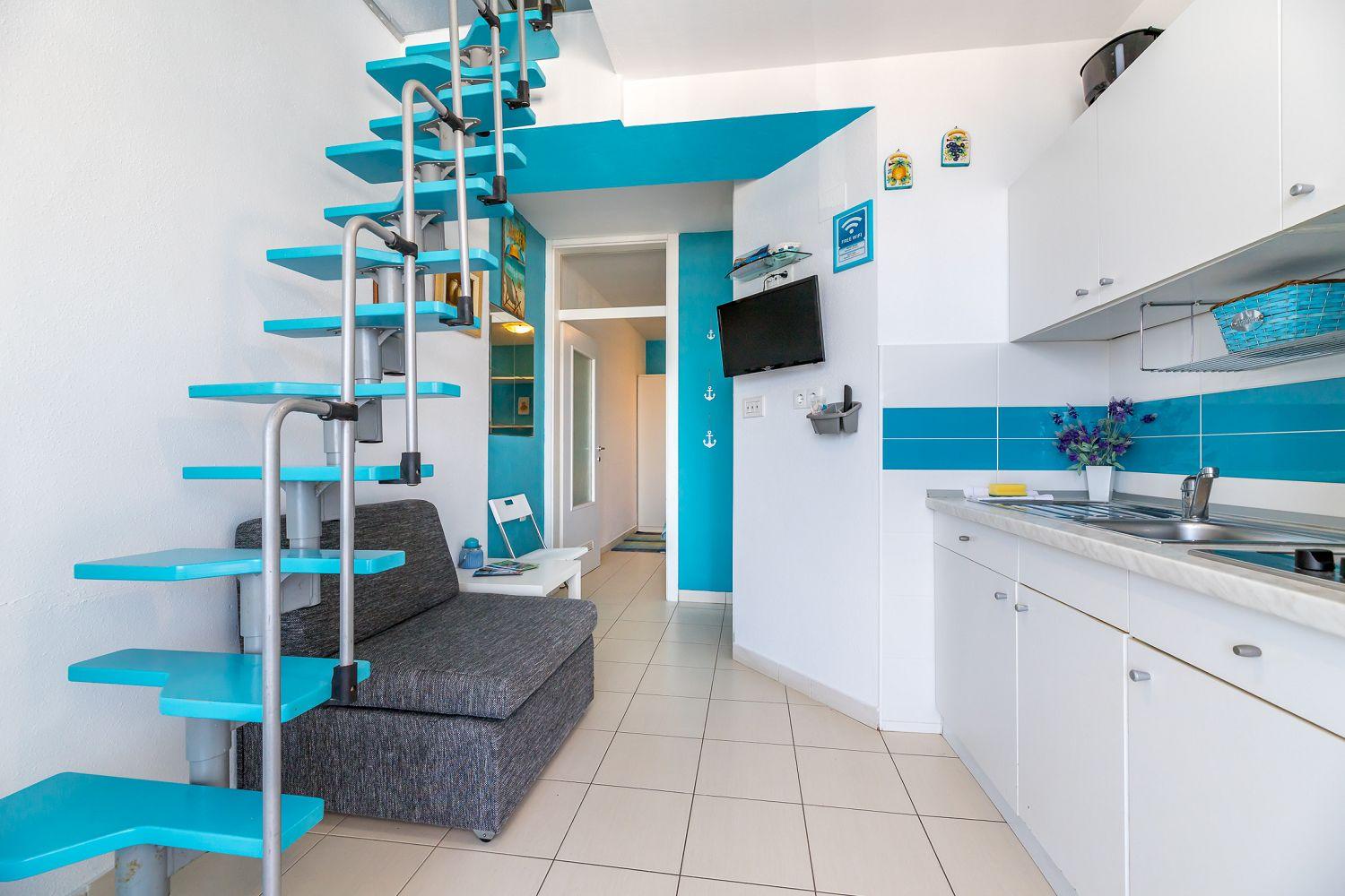 Vom Objekt bis zum Strand sind es 10 Meter und die Entfernung zum Zentrum beträgt 900 Meter. Das nächstgelegenste Lebensmittelgeschäft befindet sich 100 Meter von der Ferienimmobilie entfernt. In 50 Metern ist das umliegende Restaurant zu erreichen.