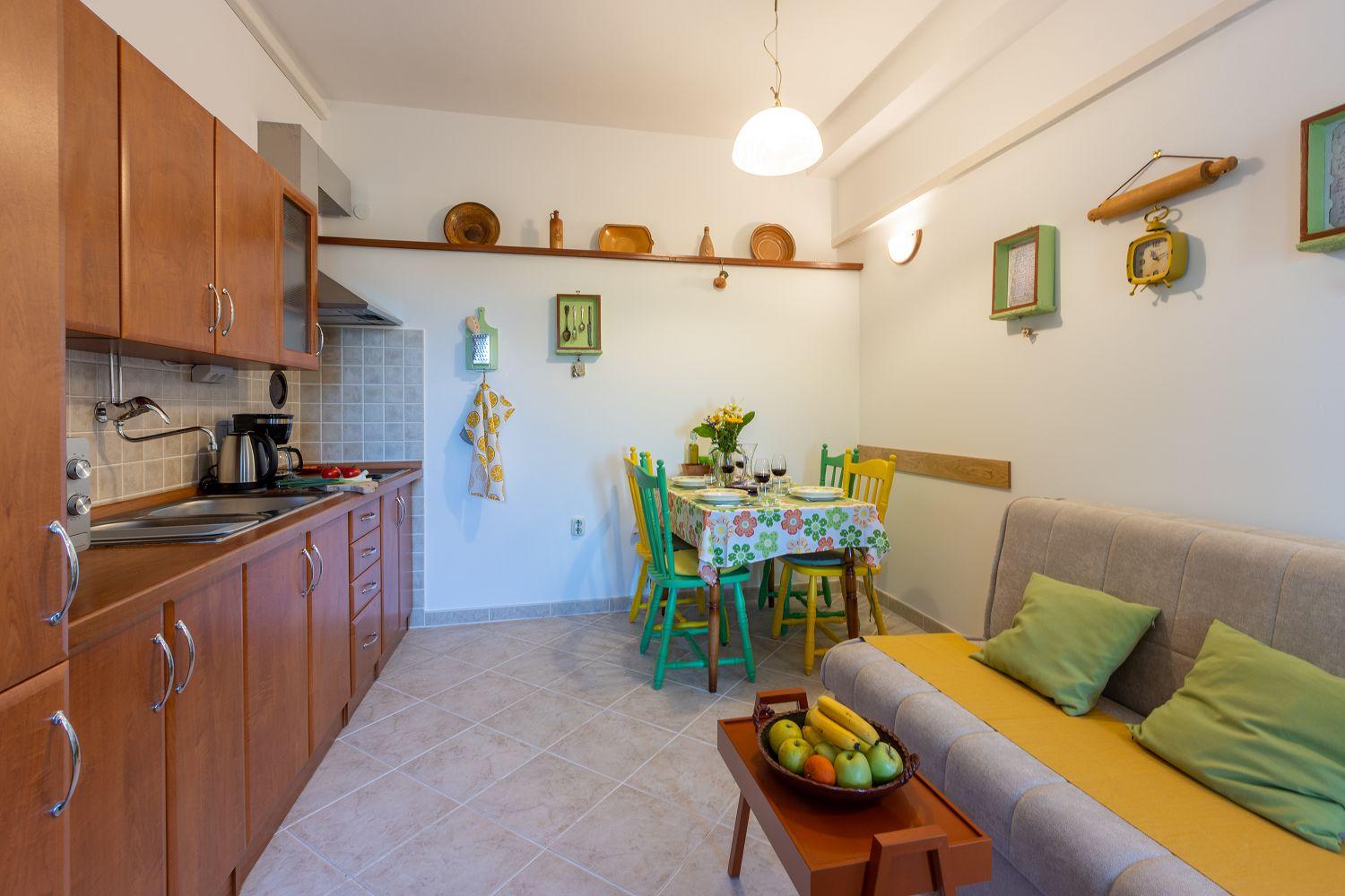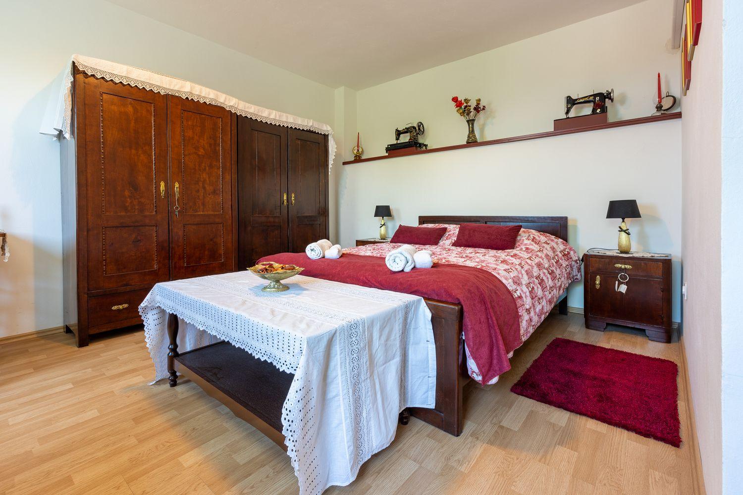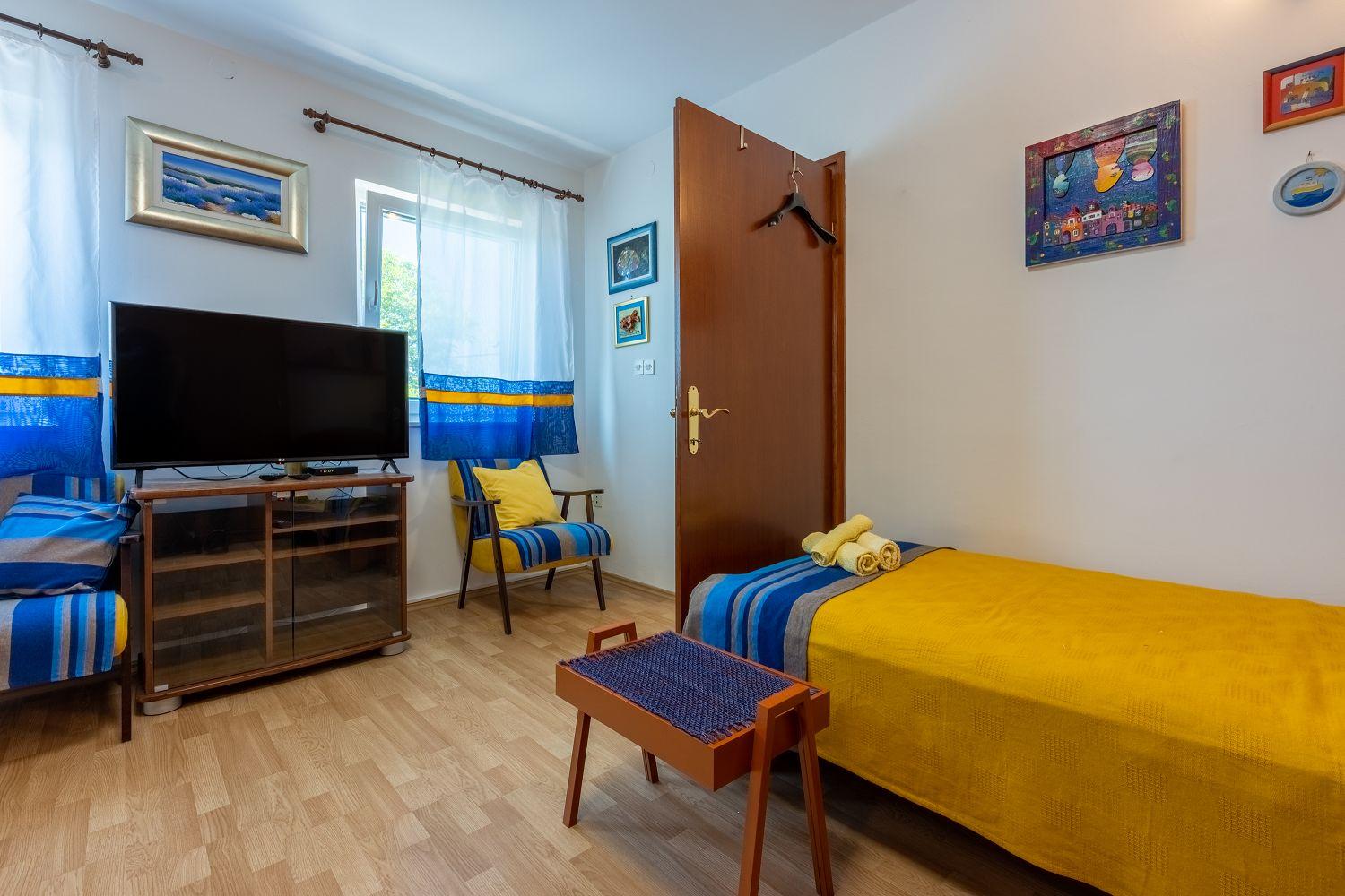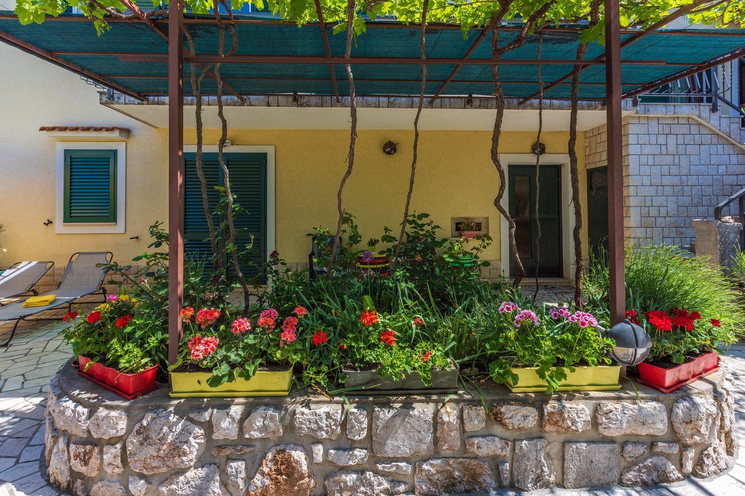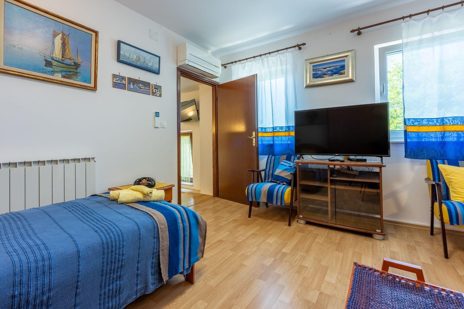 Im mediterranen Stil eingerichtetes und renoviertes Ferienhaus. Das Gebäude befindet sich auf einem Familiengrundstück, das auf allen Seiten von einer Steinmauer umgeben ist. Durch die dicken Steinmauern bietet es ein Höchstmaß an Privatsphäre und eine angenehme Atmosphäre während des Aufenthalts. Mit seiner Ruhe und Gemütlichkeit lädt dieses Haus zum Besuch und Verweilen ein. Zur privaten Nutzung stehen zur Verfügung: Sonnenschirm, Liegestühle, Dusche im Hof, Terrasse, Tisch, großer Kamin mit Grill. Vom Hof und von der Terrasse hat man einen schönen Blick in die Natur und auf das herrlich blaue Meer unserer Kvarner Bucht.
