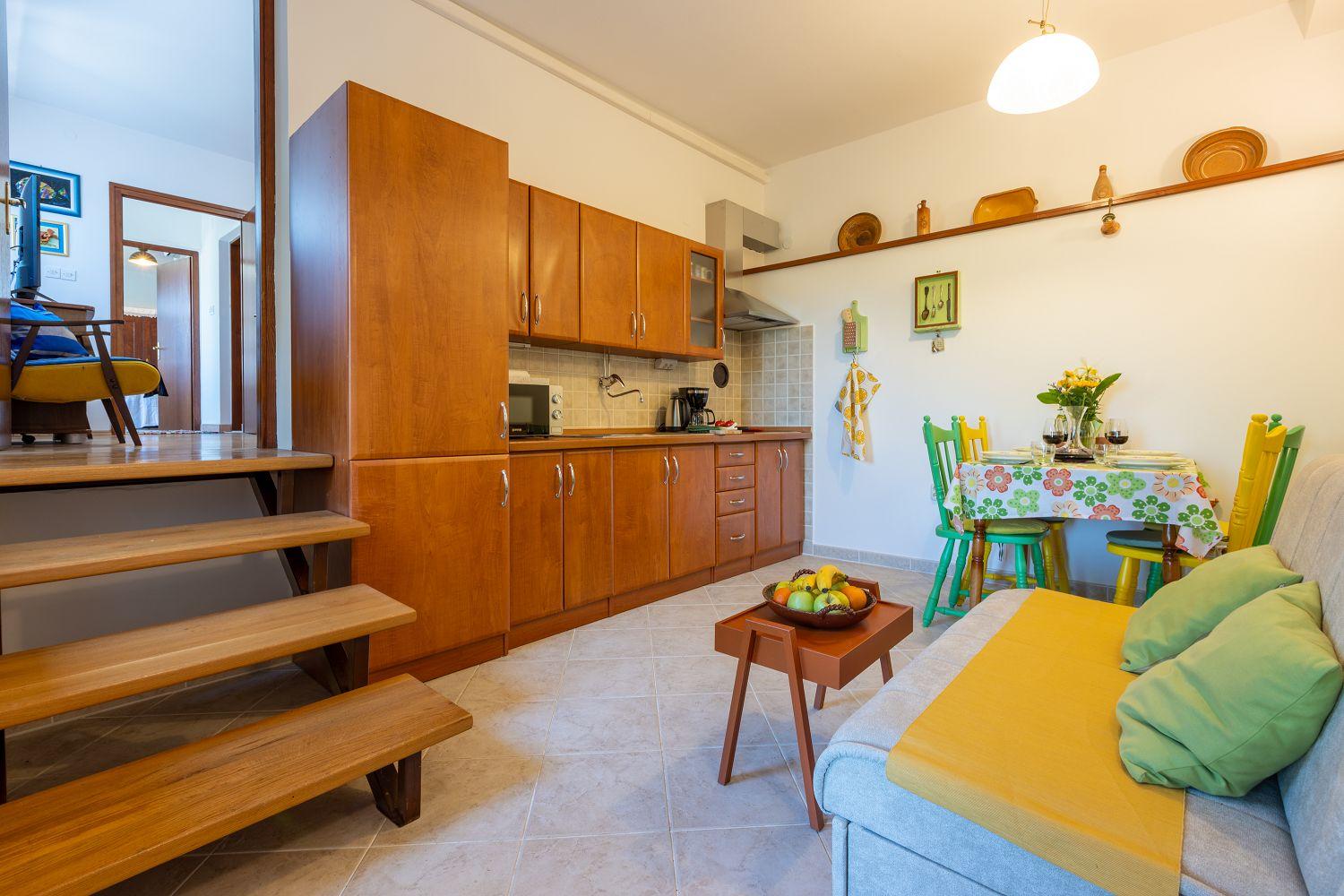 Im ersten Stock befinden sich eine sehr gut ausgestattete Küche mit Essecke und Wohnzimmer, ein Schlafzimmer mit zwei Einzelbetten, ein Schlafzimmer mit Doppelbett und ein geräumiges Badezimmer.
