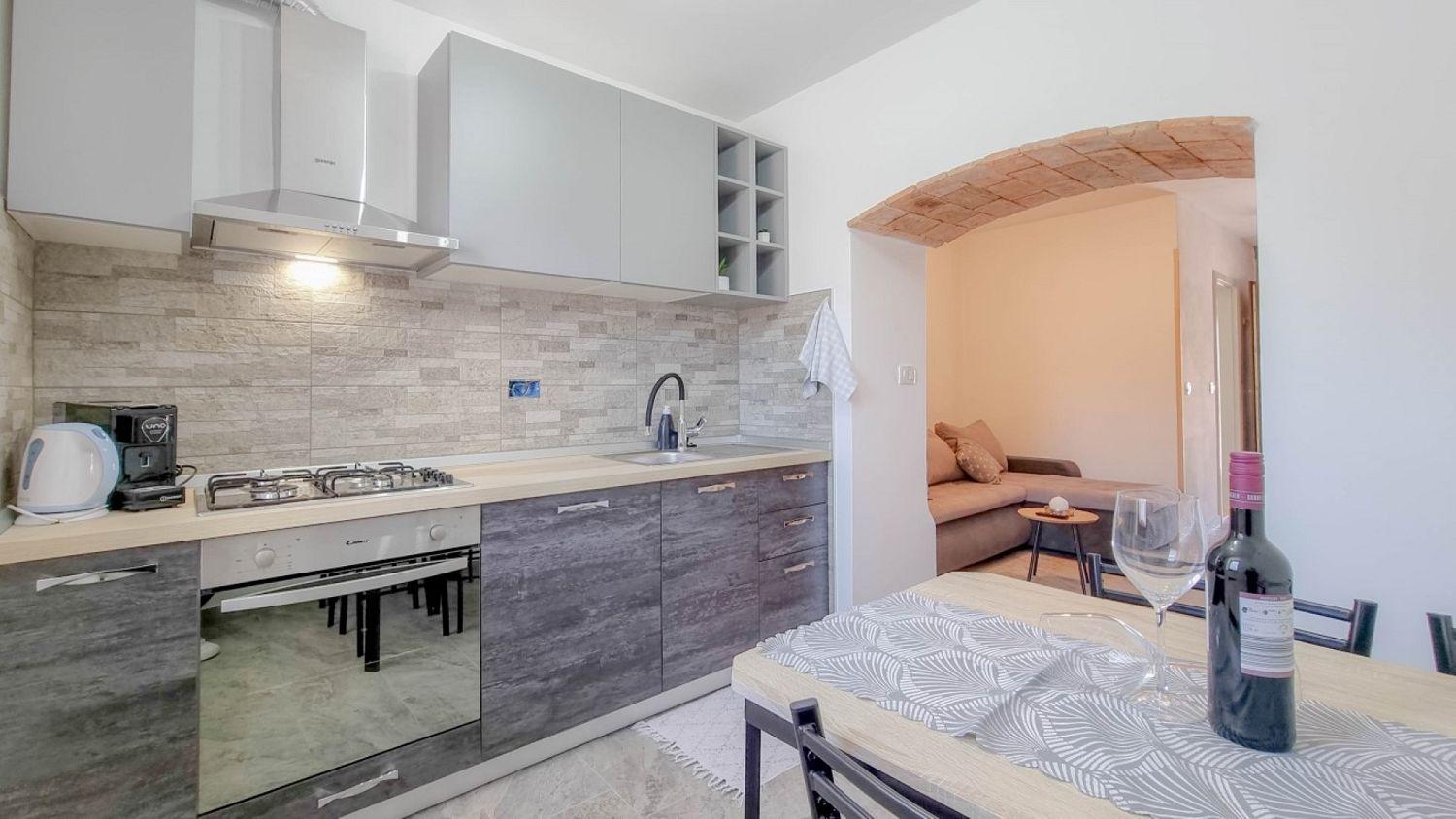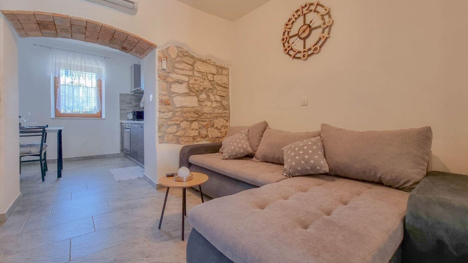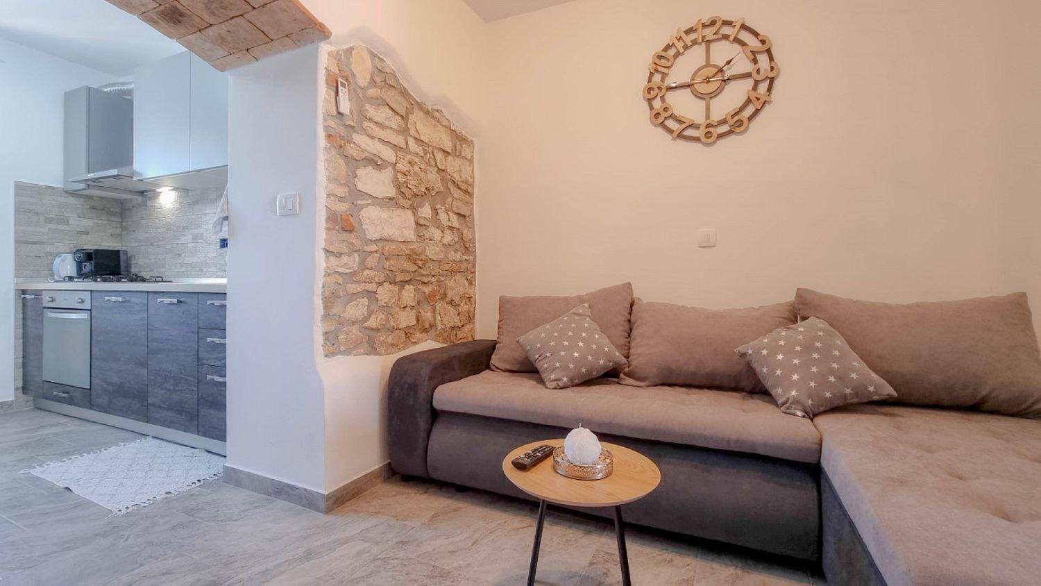 Willkommen in unserem charmanten Studio-Apartment im Herzen von Novigrad in Istrien! Diese komfortable Ferienwohnung erstreckt sich über zwei Etagen und bietet Platz für bis zu 3 Personen, ideal für einen erholsamen Urlaub an der Adria. Im Erdgeschoss befinden sich ein geräumiges Wohnzimmer mit bequemer Schlafcouch, eine voll ausgestattete Küche mit Essbereich und ein modernes Badezimmer, die alles bieten, was man für einen komfortablen Aufenthalt benötigt. Im ersten Stock befindet sich ein gemütliches Schlafzimmer mit Doppelbett, das nach einem aufregenden Tag voller Entdeckungen einen ruhigen und erholsamen Schlaf garantiert.