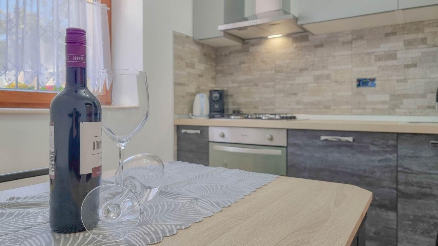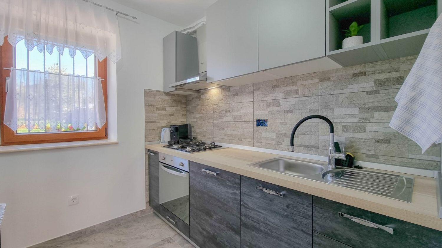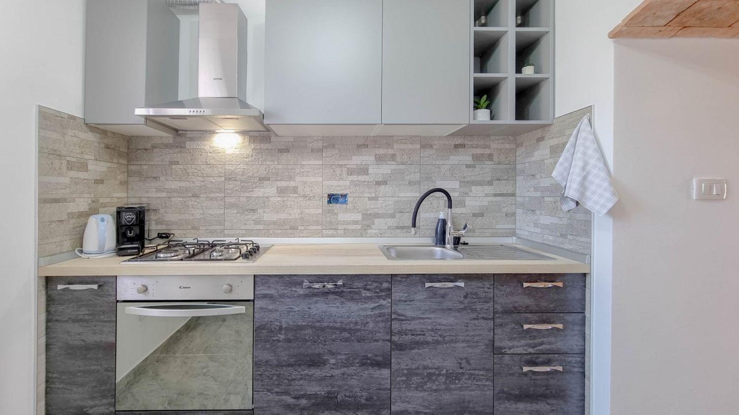 Die Küche ist mit Gasherd, Backofen, Kühlschrank und Kaffeemaschine ausgestattet und bietet Ihnen alles, was Sie für die Zubereitung köstlicher Mahlzeiten benötigen.