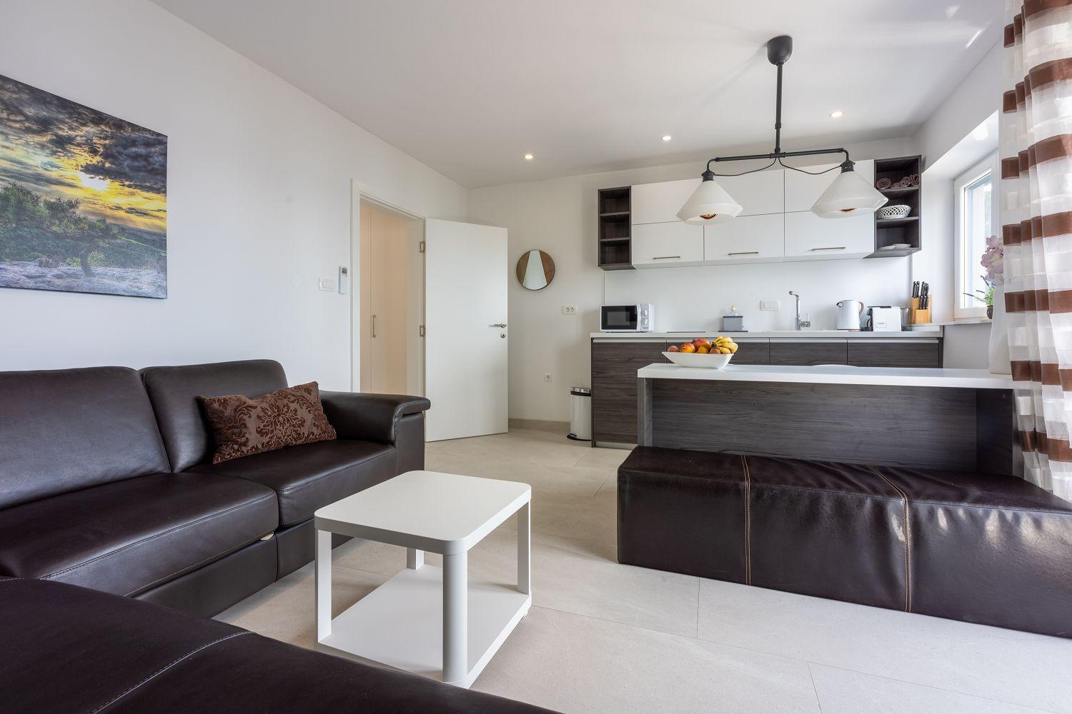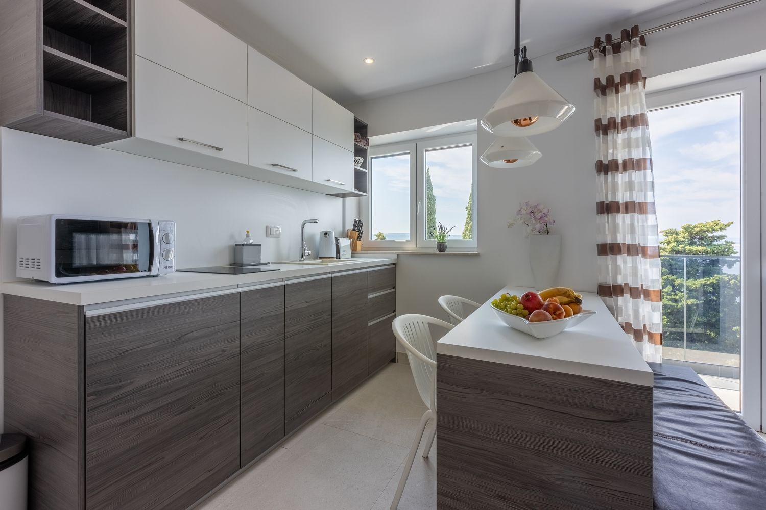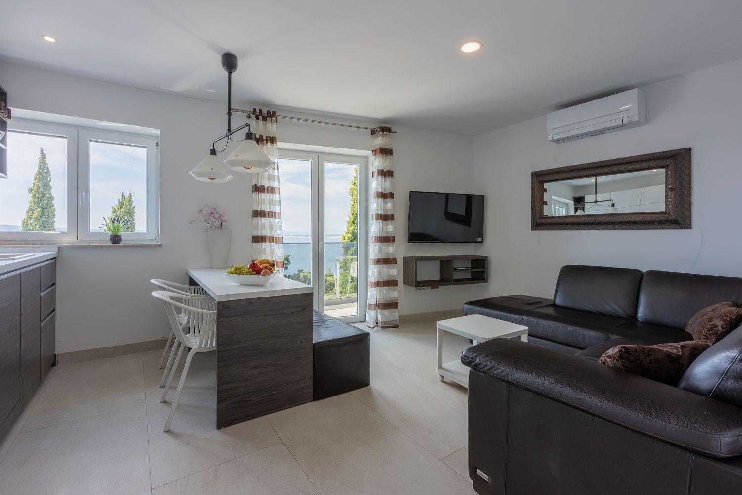 Diese neu eingerichtete Ferienwohnung befindet sich in einem der schönsten Ortsteile Crikvenicas. Sie ist nur wenige Geheminuten vom beliebten Strand entfernt und bietet Platz für 2 bis 4 Personen. Die Wohnung besteht aus einem Eingangsbereich, einem Wohnzimmer mit Küche, einem Schlafzimmer, einem Badezimmer und herlichem Balkon mit Meerblick. Das Schlafzimmer verfügt über ein gemütliches Doppelbett. Im Wohnzimmer steht eine ausziehbare Schlafcouch zur Verfügung welche ideal für 2 Kinder geeignet ist. Das Wohnzimmer sowohl auch das Schlafzimmer sind klimatisiert. Zu dieser Wohnung gehört ein Parkplatz.