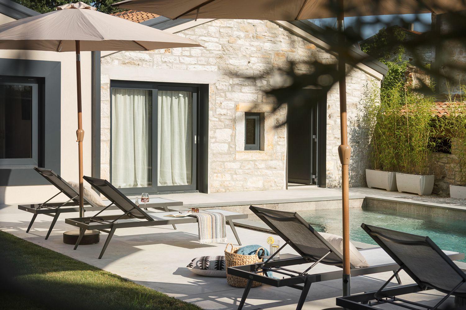 Die Villa Bino & Maria bietet Platz für 2-4 Personen auf 65qm grosser Fläche und verfügt über ein geräumiges offenes Wohnzimmer, dass mit der Küche und dem Essbereich verbunden ist, ein Schlafzimmer und Badezimmer mit Dusche/Wc. Vom Wohnzimmer aus haben Sie direkten Zugang zum Pool und Garten. Die Villa ist komplett ausgestattet und mit viel Liebe dekoriert.