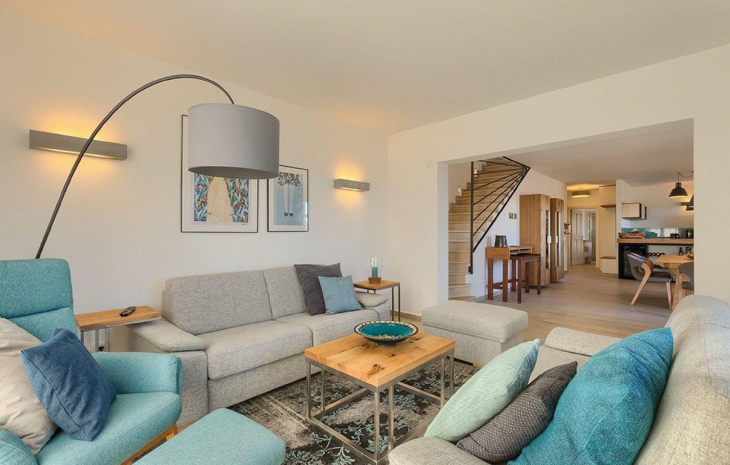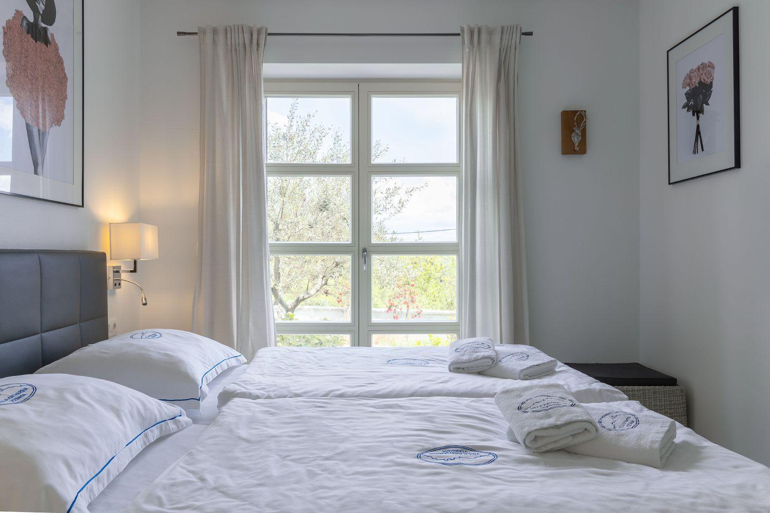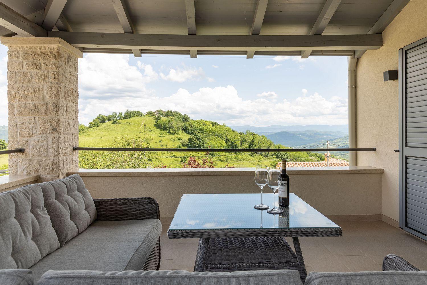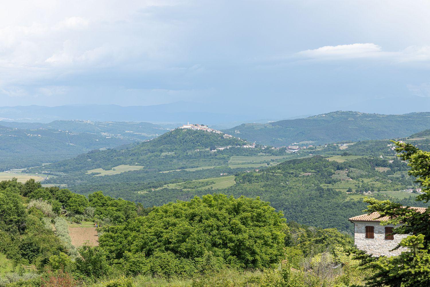 Die Villa ist ein neu erbautes Haus im istrischen Stil. Sie liegt am Rande von Vižinada und bietet einen wunderschönen Panoramablick auf Motovun und das grüne Landesinnere Istriens. Porec ist nur 20 Autominuten entfernt. Bis zum Touristenort Lanterna mit seinen schönen und gepflegten Kies- und Felsstränden sind es nur 17 Kilometer. In der Nähe gibt es mehrere Wein- und Olivenölstraßen sowie bekannte Weingüter. Für Radsportfans befindet sich in der Nähe auch der Parenzana-Rad-/Wanderweg. Das komplett eingezäunte 850 m² große Grundstück verfügt über einen 33 m² großen Pool, eine überdachte Terrasse mit Esstisch zum Verweilen und Essen im Freien, Liegestühle und einen gemauerten Grill. Im Hof befinden sich Parkplätze für zwei Fahrzeuge, außerdem ist ein Fahrradabstellraum vorhanden. Das schöne Ferienhaus mit Pool erstreckt sich über insgesamt 168 m² auf zwei vollklimatisierten Etagen. Im Erdgeschoss befindet sich ein Wohnraum mit einer voll ausgestatteten Küche, einem Esstisch, einem Wohnzimmer mit Schlafsofa für zwei Personen und einem Kamin sowie eine separate Toilette. Vom Esszimmer aus haben Sie Zugang zur schönen, überdachten Terrasse, die einen herrlichen Blick auf Motovun und die grüne Umgebung bietet. Ein Schlafzimmer mit Doppelbett und eigenem Bad mit Dusche und WC befindet sich ebenfalls im Erdgeschoss. In der ersten Etage befinden sich zwei geräumige Schlafzimmer mit jeweils eigenem Bad mit Dusche und einem geräumigen Balkon mit Sitzgelegenheiten, von dem aus Sie einen herrlichen Blick auf die grüne Landschaft haben. Kleinere Haustiere sind auf Anfrage möglich. Jugendgruppen sind nicht gestattet.