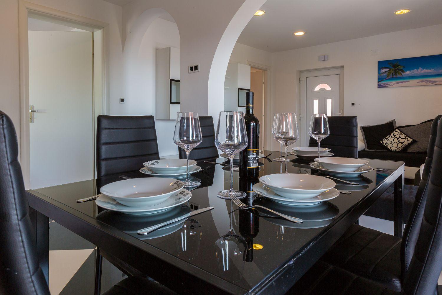 Auf dem Grundstück steht Ihnen ein 24 m² großer Swimmingpool zur Verfügung. Die große, möblierte Terrasse mit Grill und Meerblick lädt zum Entspannen ein. Die 125 m² Wohnfläche der Villa verteilen sich auf zwei Etagen (das EG ist wie eine separate Wohnung, Zugang zur 1. Etage über Außentreppe). Das Erdgeschoss besteht aus zwei Schlafzimmern, einem Badezimmer, einem Wohn-/Esszimmer und einer gut ausgestatteten Küche und hat Zugang zur Poollandschaft und zur Terrasse. In der ersten Etage gibt es zwei Schlafzimmer, ein Badezimmer, ein modernes Wohn-/Esszimmer mit Küche und ein traumhafter Balkon erwarten Sie im ersten Obergeschoss. Der ca. 23 m² große Balkon ist mit Tisch und Stühlen ausgestattet. Im Außenbereich befinden sich ein wunderschöner Swimmingpool, eine überdachte Terrasse mit Grill und ein abgeschlossener Parkplatz.